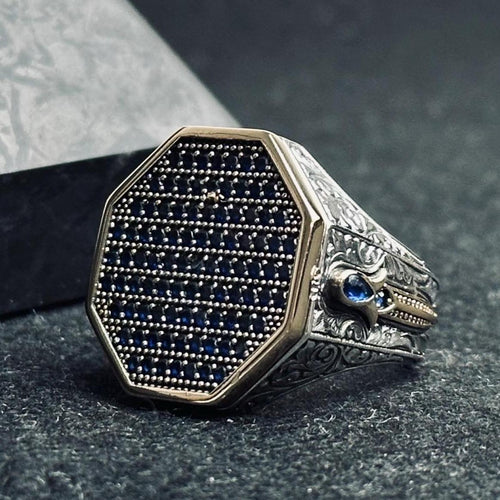 8-Shape Silver Ring for Men - Tiny Blue Zircon Detail